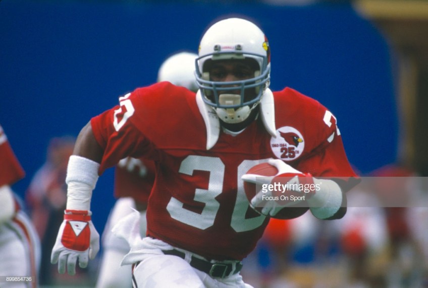 ST. LOUIS, MO – CIRCA 1984: Stump Mitchell #30 of the St. Louis Cardinals carries the ball during an NFL football game circa 1984 at Busch Stadium in St. Louis, Missouri. Mitchell played for the Cardinals from 1981-89. (Photo by Focus on Sport/Getty Images)
