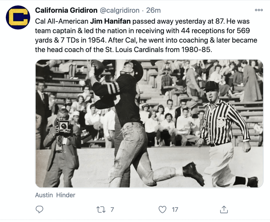 Coach Hanifan loved St. Louis, his former players, and the thousands of friends that he made over his 60+ years in football. He will be greatly missed.