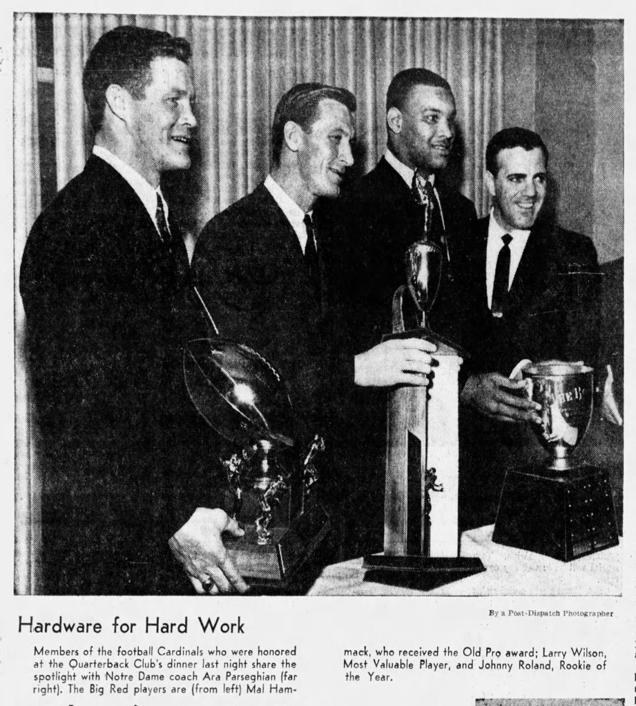 “I like to go down on punts with a chance to kill the ball close in or maybe jolt the ball out of a receiver’s hands,” Hammack told Bob Broeg of the St. Louis Post Dispatch in a 1966 interview, “but I believe the most satisfaction is in peeling back to help block for a punt return, hopeful that it might go all the way. The most satisfaction, that is, next to winning.”