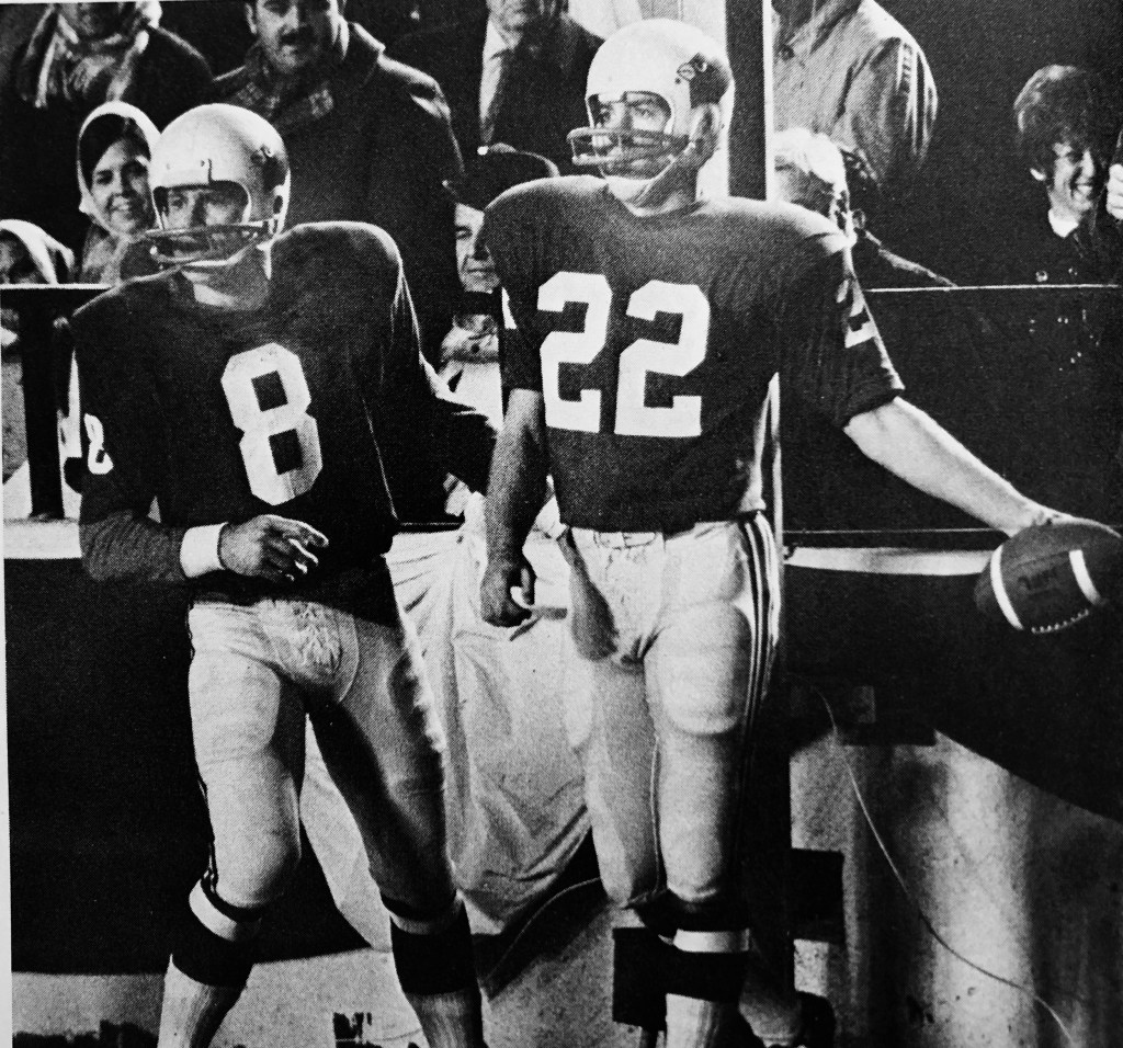 Hart’s touchdown-saving play inspired the Big Red defense, which then made a goal line stand. On first down, Stallings tackled running back Calvin Hill for an 8-yard loss. On second down, Morton threw an incomplete pass. On third down, Morton scrambled to the 3-yard line. On fourth down, Wehrli knocked down a Morton pass in the end zone.
