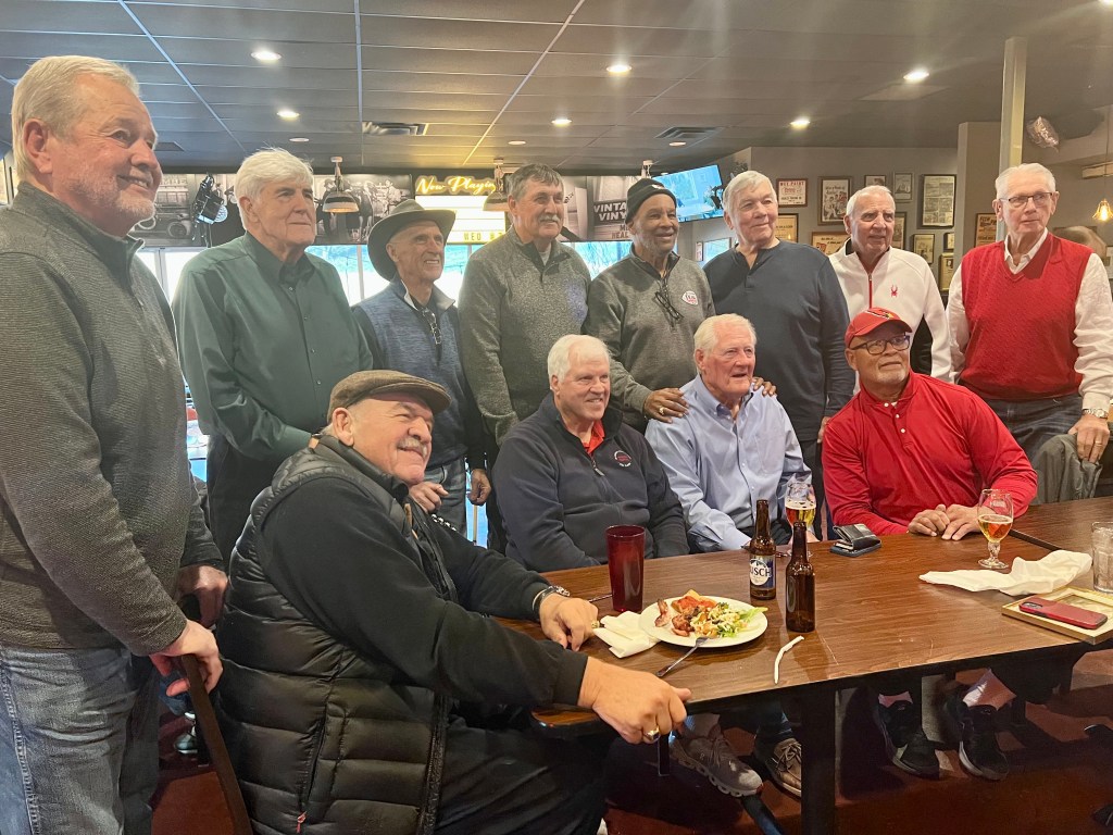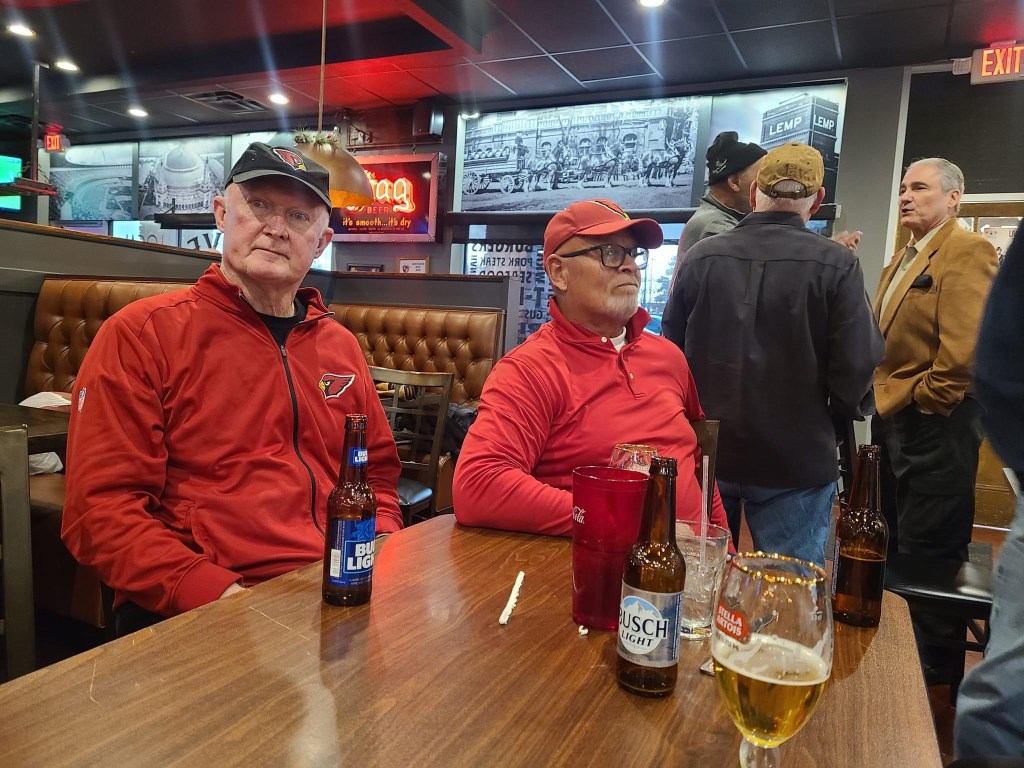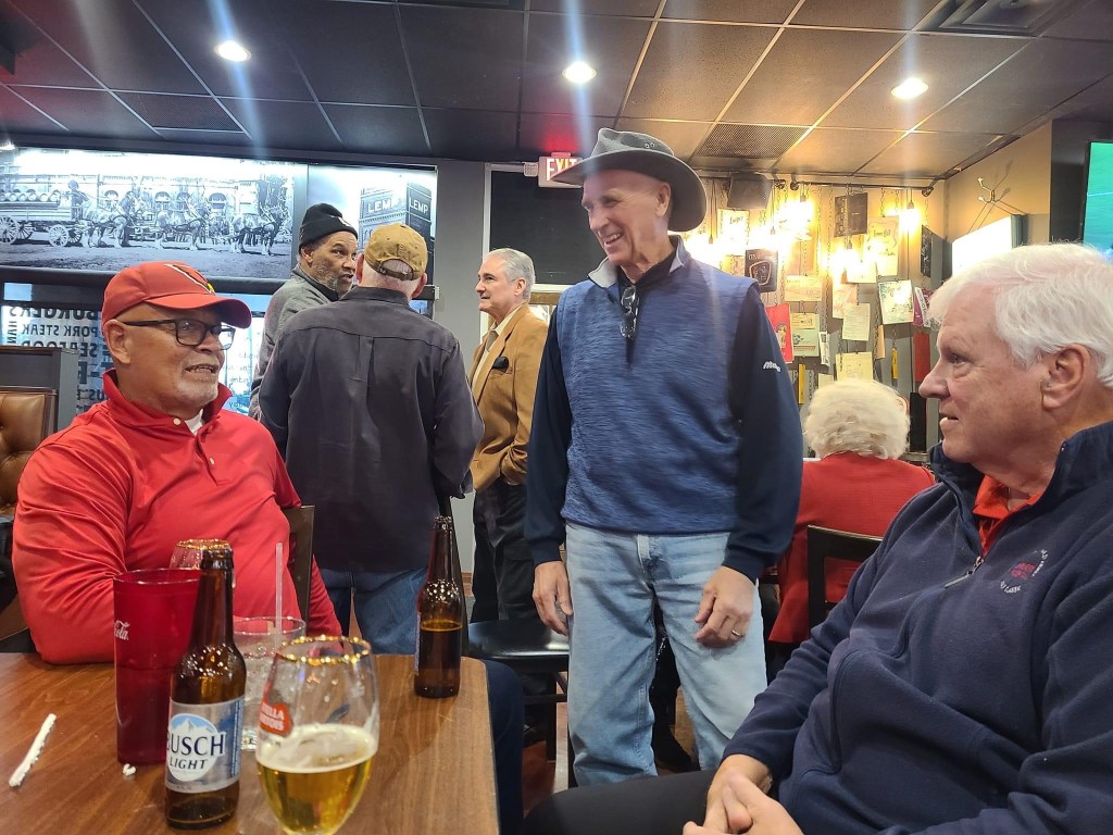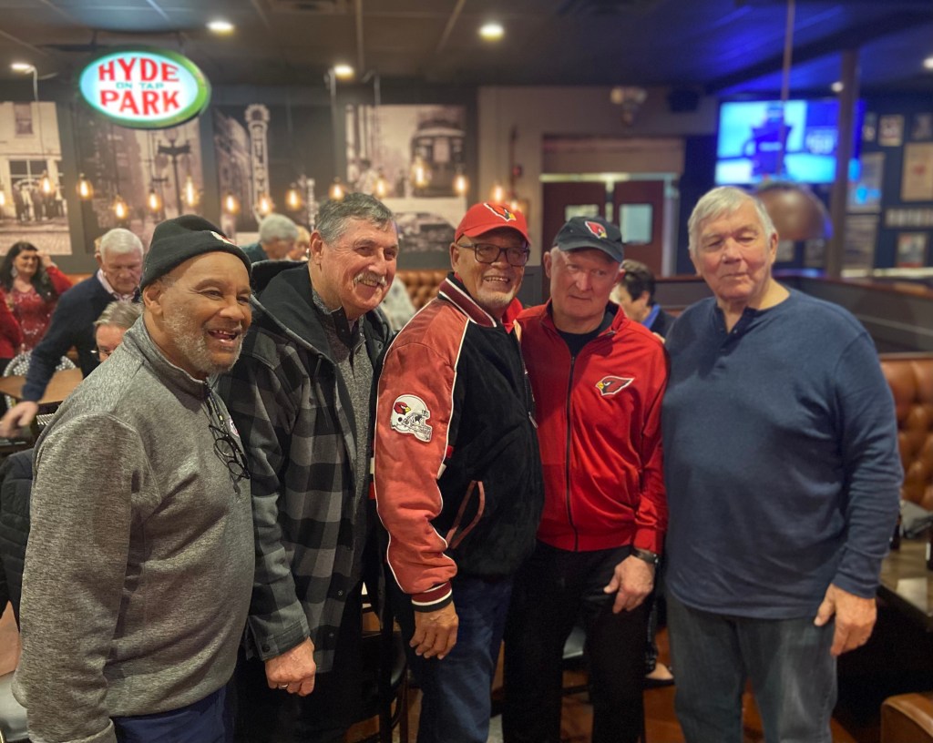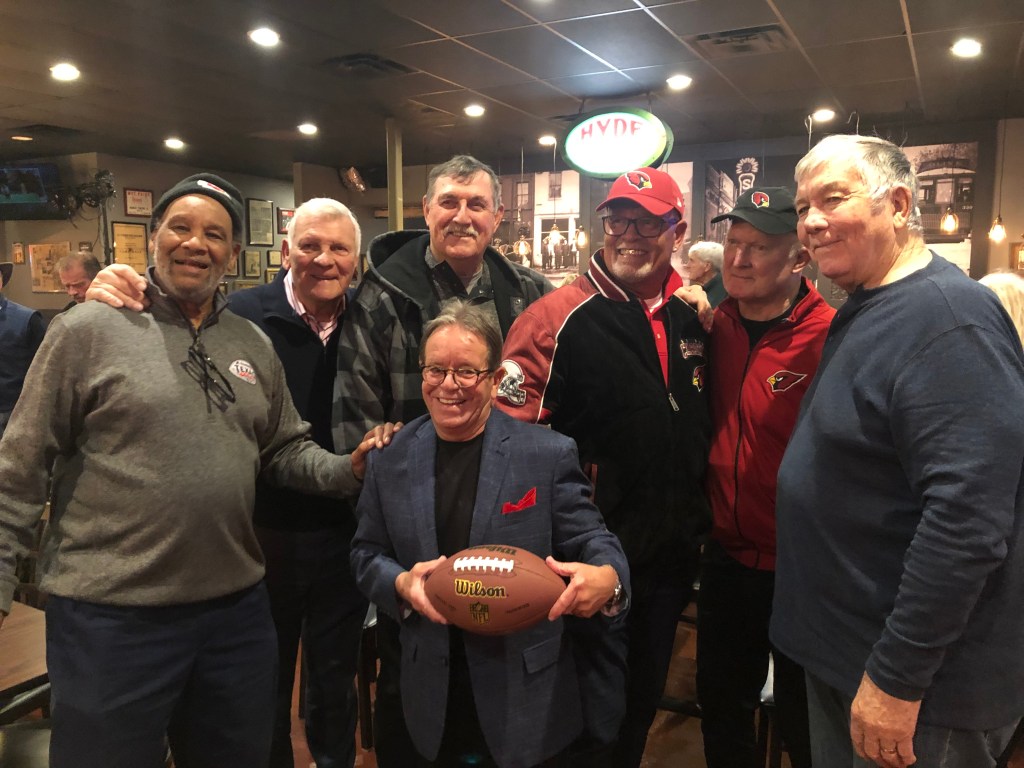 The annual Big Red alumni Christmas party was recently held at Circa Pub & Grill in Des Peres, MO. The following former players were in attendance: Dan Dierdorf, Jackie Smith, Johnny Roland, Eric Williams, Terry Miller, Keith Wortman, Irv Goode, Ron Yankowski, Bob Rowe, Mark Arneson, Herschel Turner, and Mike Wood. Former Mizzou greats Gus Otto and Howard Richards were also in attendance. A big thank you goes out to the owner of Circa, Jamie Martin, for hosting the event as well as to Vicky James of Lafayette Industries who obtained sponsors to cover the cost of food and drinks.