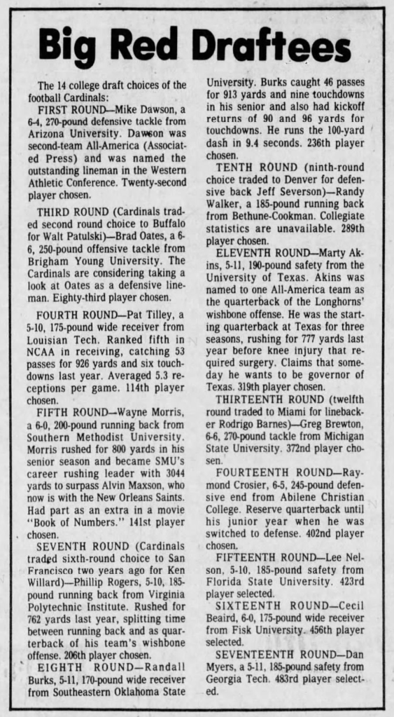 And by most measures, the Big Red’s 1976 draft was a hit—even though the Cardinals had picks in only 13 of the 17 rounds.
