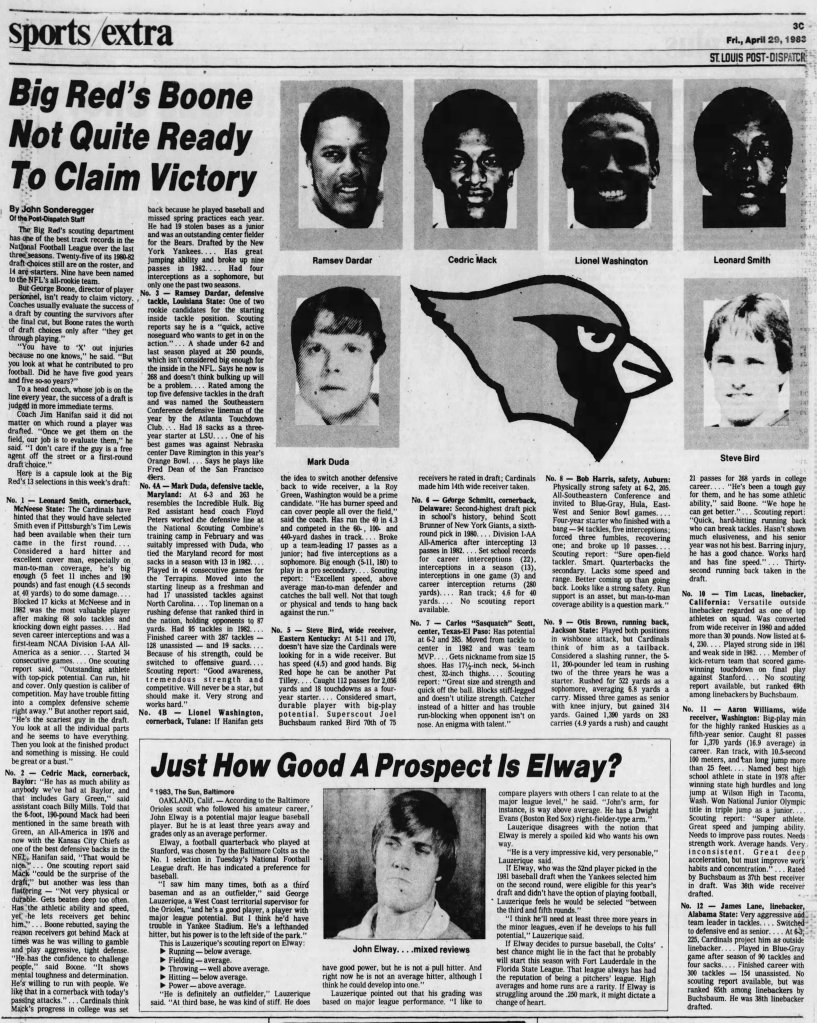 The Big Red Zone continues its series by looking back on each of the 28 St. Louis Cardinals drafts (1960-87). This installment focuses on the 1983 Draft, which was held April 26-27 in New York.
