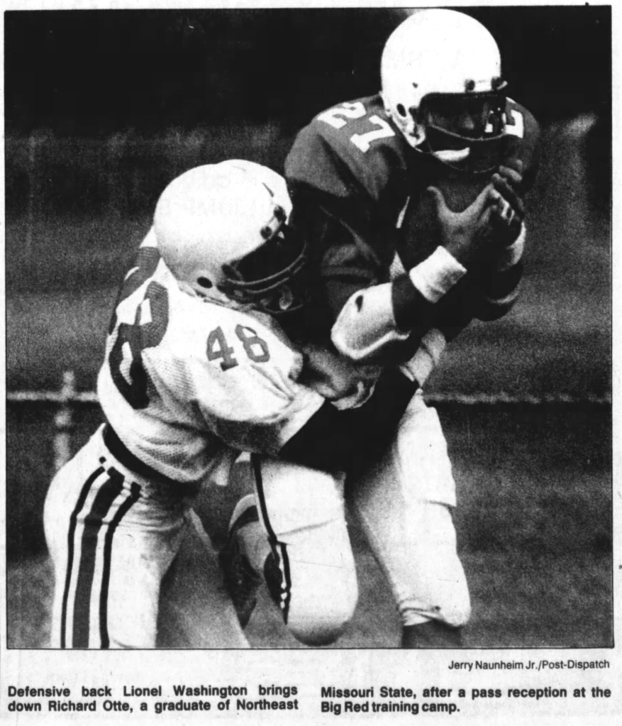 A sprinter for Tulane’s track team who ran the 100 meters in 10.3 seconds and the 220 in 20.8, Lionel Washington had an explosive rookie season in 1983, intercepting eight passes for 92 yards. “I’ve never seen a young man make as many big plays as Lionel does,” assistant head coach Floyd Peters said during training camp the following year. But Washington played only four seasons in St. Louis—he had 16 interceptions for 201 yards and one touchdown—before he was traded to the Raiders. He played 11 more NFL seasons: nine with the Raiders and two with Denver.