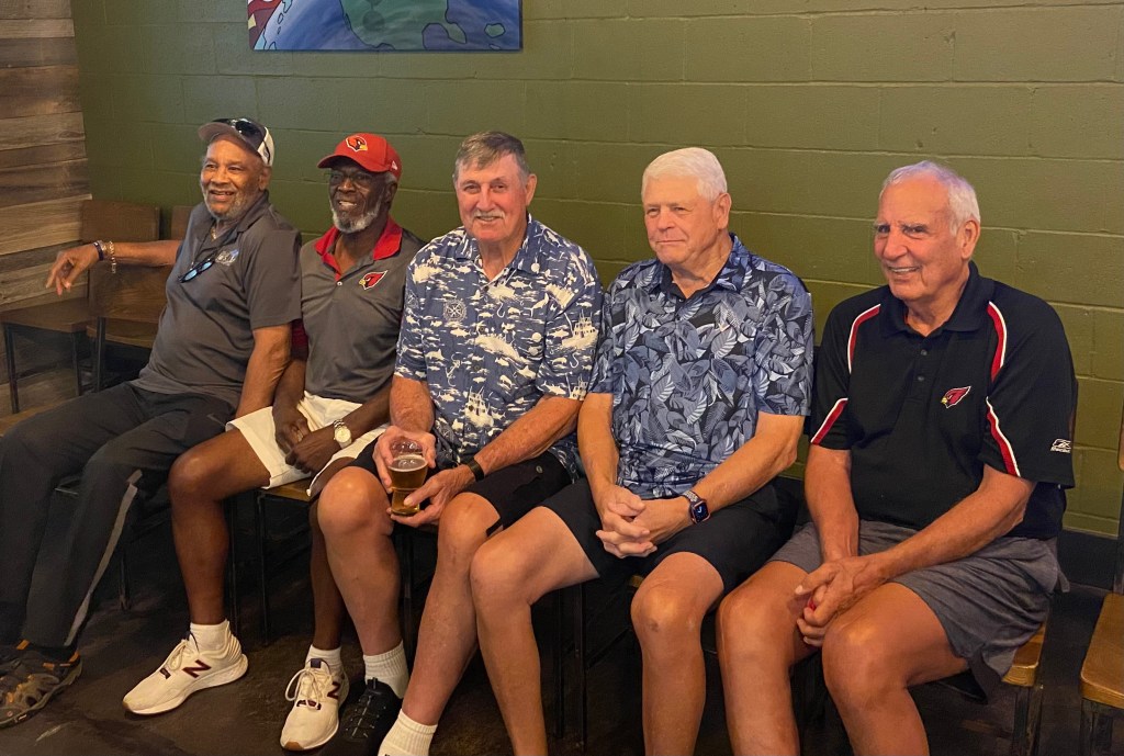Many former St. Louis Football Cardinals came out including Jim Hart, Johnny Roland, Mel Gray, and Jim Otis. Former Big Red tight end Jerry Holloway also hosted his former teammates the day before at Melvin Brewing in Eureka.