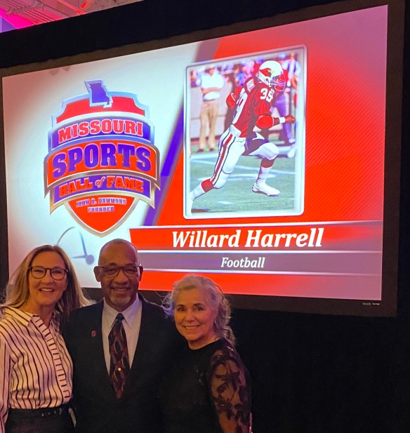 Former St. Louis Cardinals running back and special teams star Willard Harrell was inducted into the Missouri Sports Hall of Fame on Sunday at a ceremony in Springfield, Missouri.