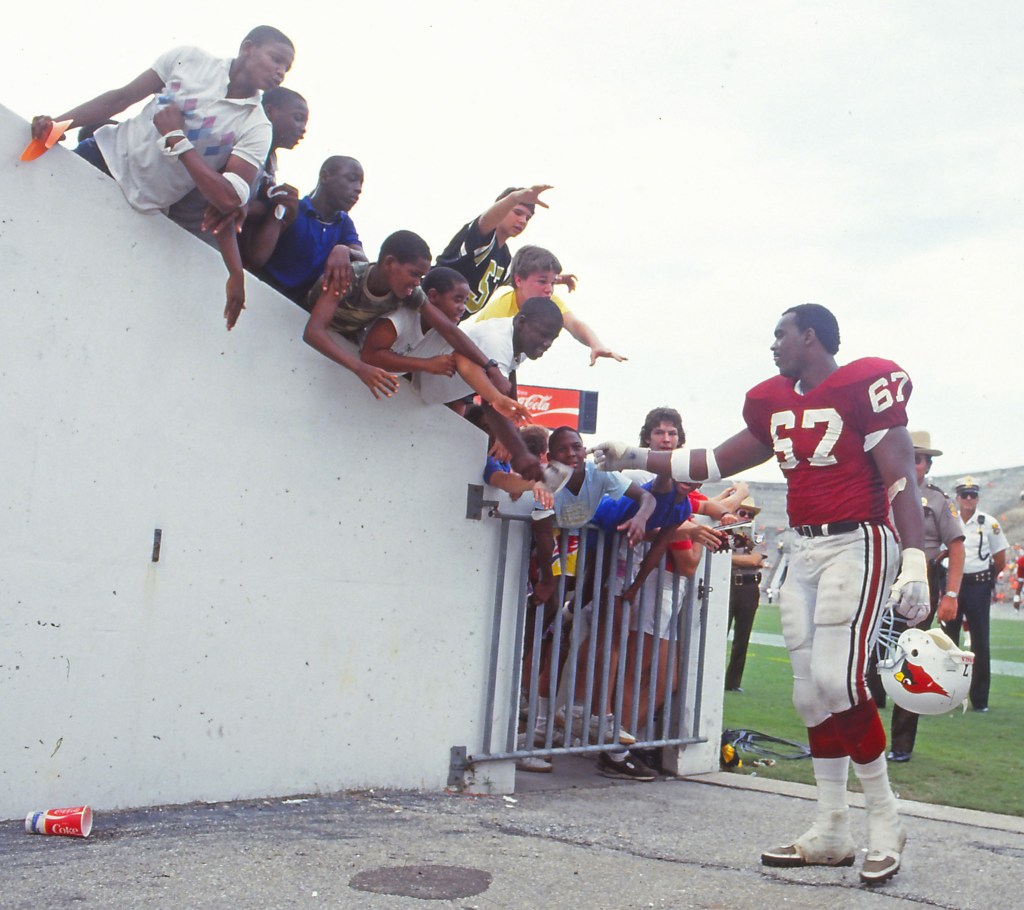 The Big Red selected Sharpe with the 16th pick in the 1982 NFL draft. The 6-foot-5, 275-pounder was named to three consecutive Pro Bowls from 1987 to 1989 and played 13 seasons in the NFL, all with the Cardinals organization. He also played a season in the USFL with the Memphis Showboats.